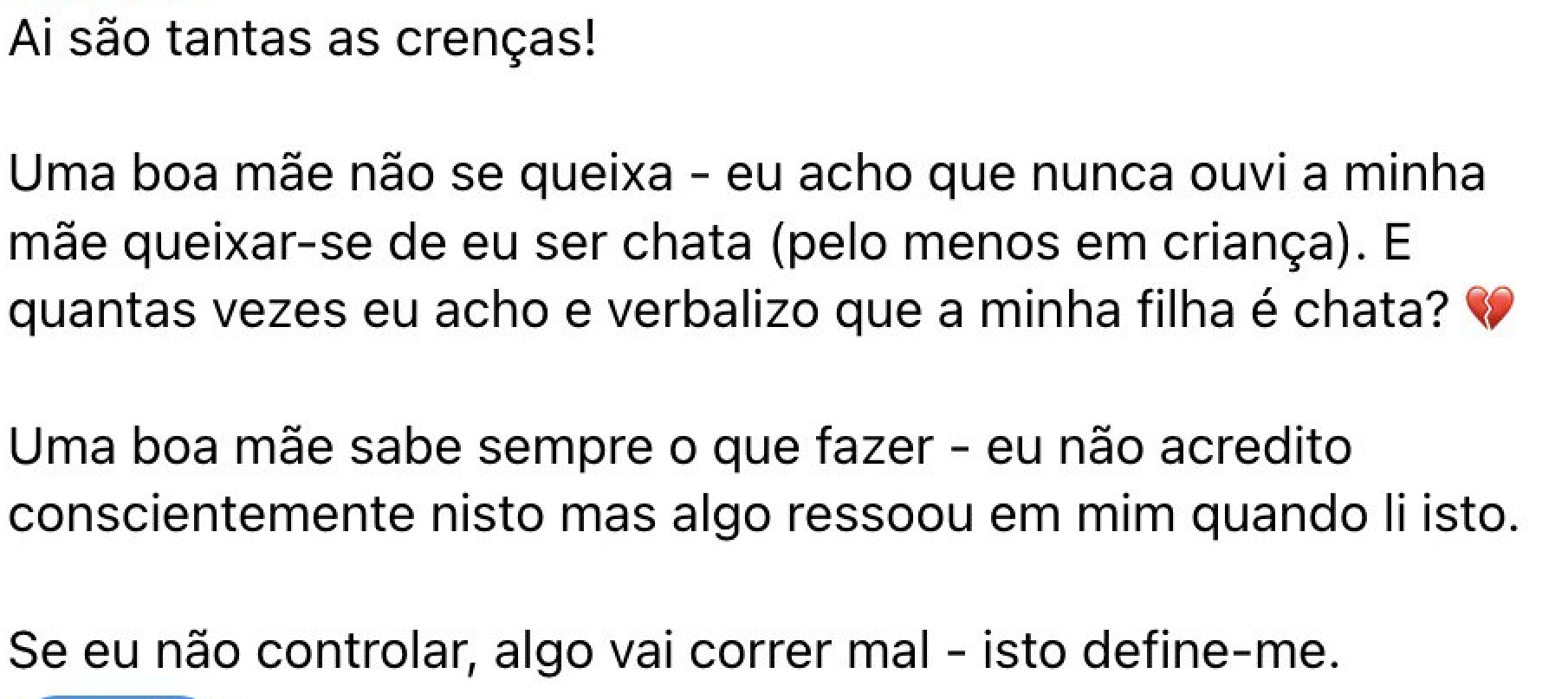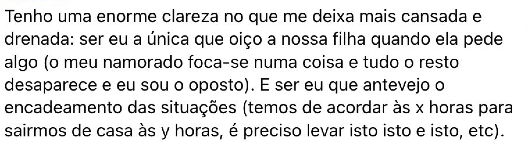 Mas a verdade é que nenhuma lista ou agenda resolve o que está por baixo: um modelo de maternidade que te põe no comando e execução de tudo, e te deixa no fim da fila.